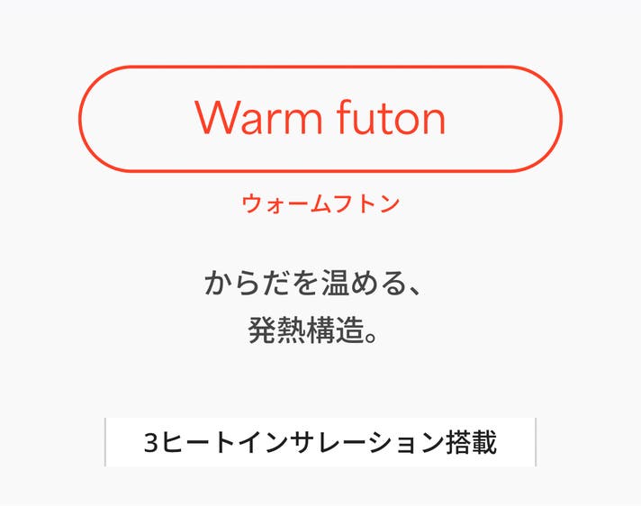 - 外気を遮断し熱を逃さずキープする、体を温める発熱構造。
