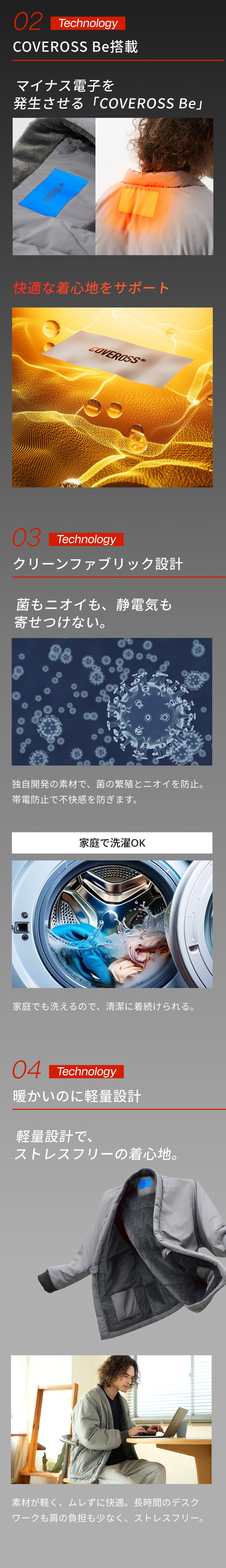 COVEROSS®は、内閣総理大臣賞受賞技術を活用した多機能快適素材の次世代スマートファブリックブランドです。独自の多機能テキスタイル技術により、温度調整、通気性、防汚、抗菌、速乾、UVカットなどの優れた機能を兼ね備え、衣類や生活用品に革新をもたらします。過酷な環境下でも快適な着用体験を提供し、COVEROSS®はただの生地ではなく、未来のライフスタイルを変えるソリューションです。