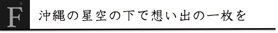 沖縄の満天の星を見た事がありますか?都会では見る事ができないたくさんの星が沖縄の北部では頭上いっぱいに広がります。そんな星空の下であなたの想い出の大切なお写真を撮影させて頂きます。