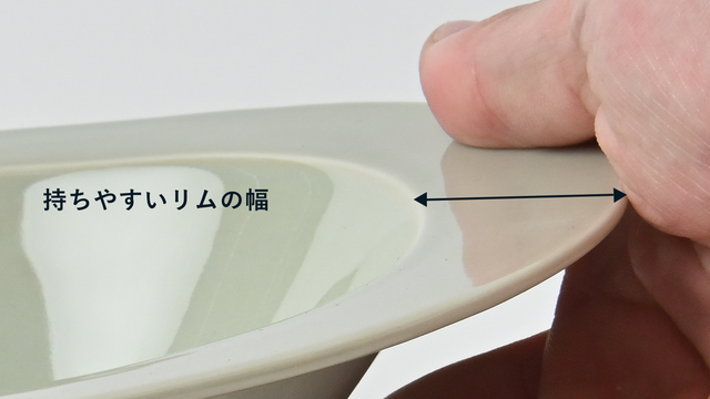 この2~3cmのリムはみなさんにとってとても使いやすく、しかも手にフィットしてまさにセーフティ。