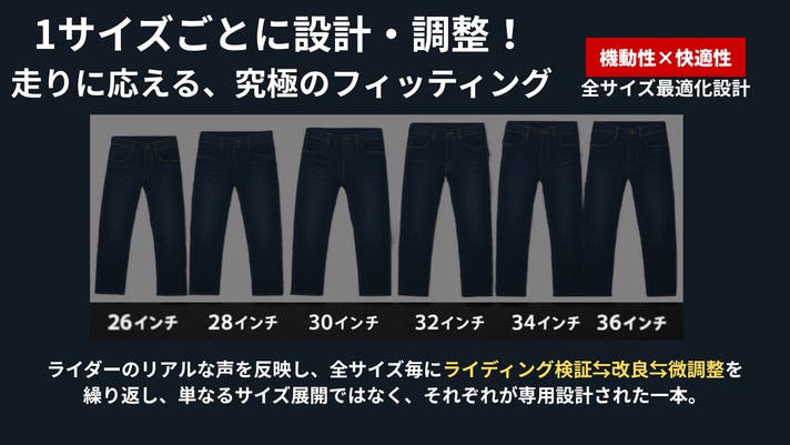 穿いた瞬間、あなたの愛車と走るために生まれたデニムだと判ります。