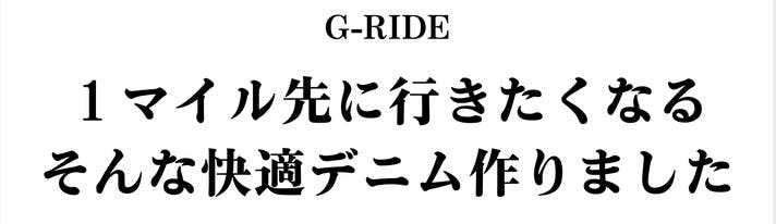 G RIDEはファストファッションの様に椅子取りゲームでトレンドを競うのではなく、椅子を作り上げファンと共に育つデニムづくりにチャレンジしたいと考えています。
