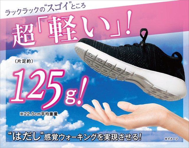 超軽量靴「ラックラック」だからこそ、負担が少なく動きやすい!まるで裸足感覚のウォーキングを実現できるのです。
