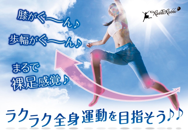 「ラックラック」を履いて、普段の歩きを是非“裸足感覚ウォーキング”に変えていただき、毎日簡単に続けられるラクラク全身運動を目指して頂きたいと考えております!