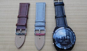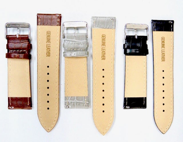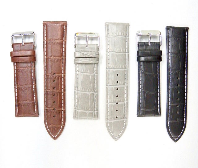 ストラップベルトは3種類。黒クロコダイル押し型、茶クロコダイル押し型、灰色クロコダイル押し型からお選びいただけます。