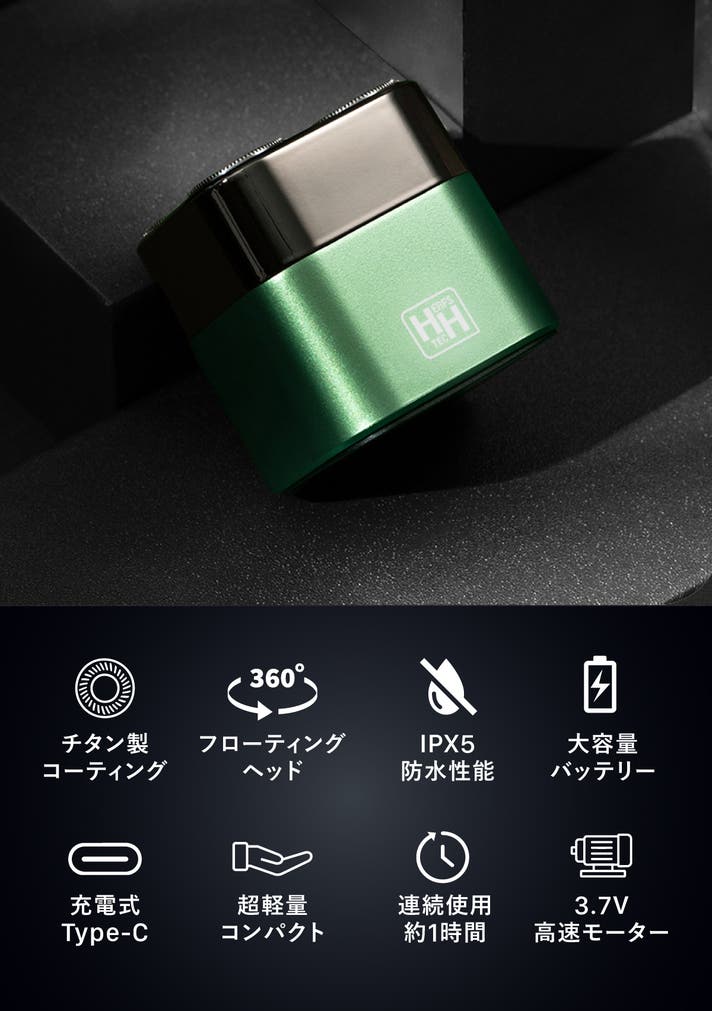 ・超薄型ダブルリング刃ネットで360°回転シェービング