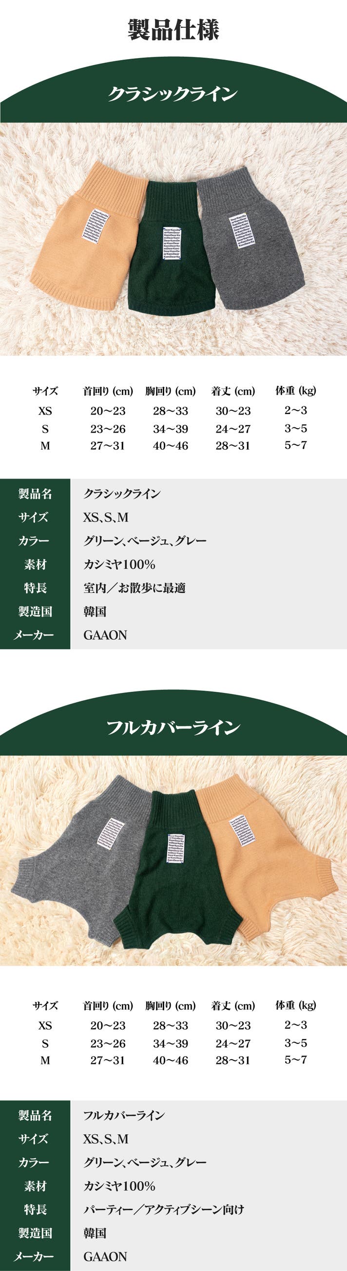 「ペット専用のためのカシミヤ」。