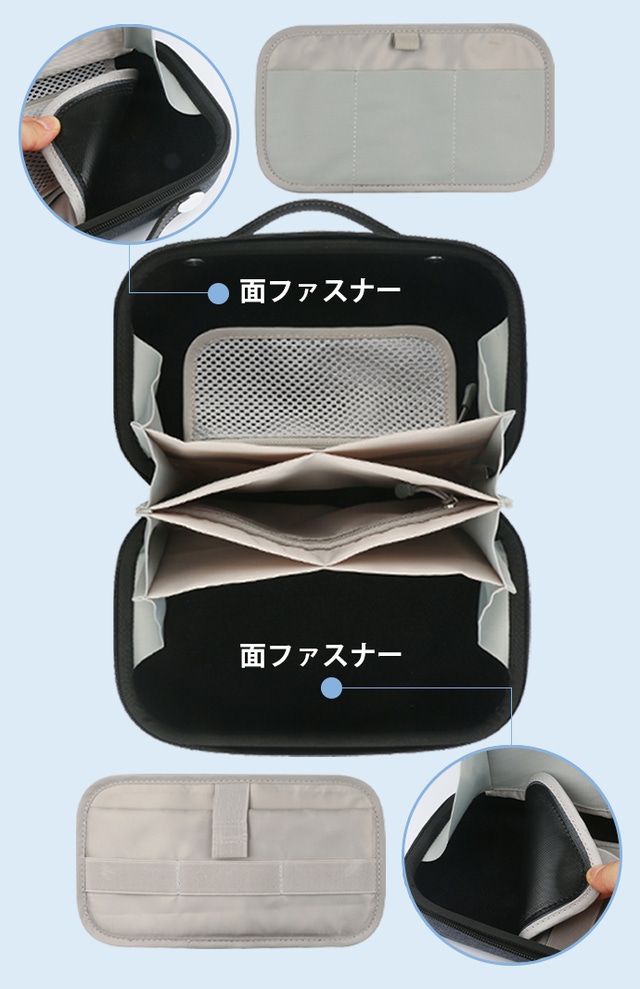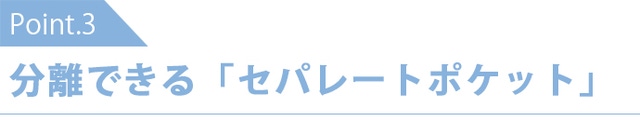 両サイドのセパレートポケットは本体から面ファスナーで切り離すことができ、収納ボードとして普段使いのカバンに入れて使用することも可能です。