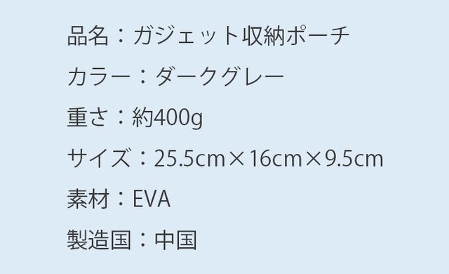 頑丈なEVA素材でできているハードタイプなので、型崩れしにくく大切なガジェット類を落下時などの衝撃からしっかりと保護してくれます。