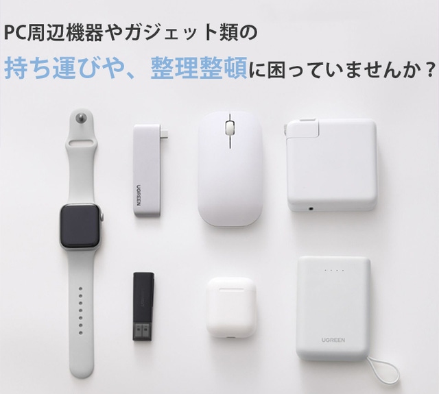 しかし、リモートワークで必要なのはノートPCやタブレットだけではなく、マウスやUSBメモリ、充電器やケーブルなどの周辺ツールも持ち運ぶ必要があります。