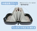 「自立型ガジェットポーチ」はダブルファスナーで開口部が180度全開できるタイプです。開いた状態でもメインコンパートメントが「ペンスタンド」のように安定して自立するのが特徴です。