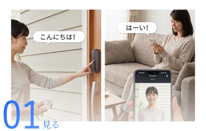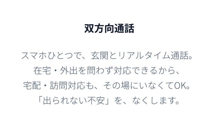 - 留守中の玄関対応を、スマホひとつで終わらせる!外出先からでも、玄関の確認・会話・解錠まで