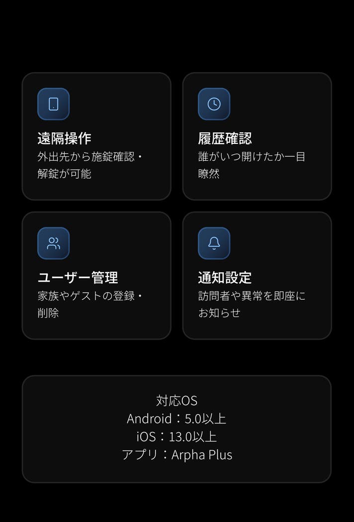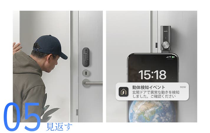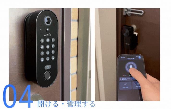 玄関の「施錠・来訪者確認・通話・防犯」を、スマートフォンひとつでまとめて管理できます。