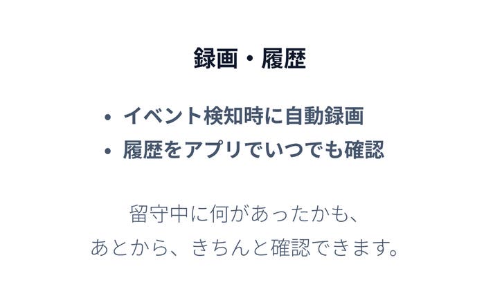来訪者との双方向通話、リアルタイム映像確認、録画確認なども月額不要で使用可能です。