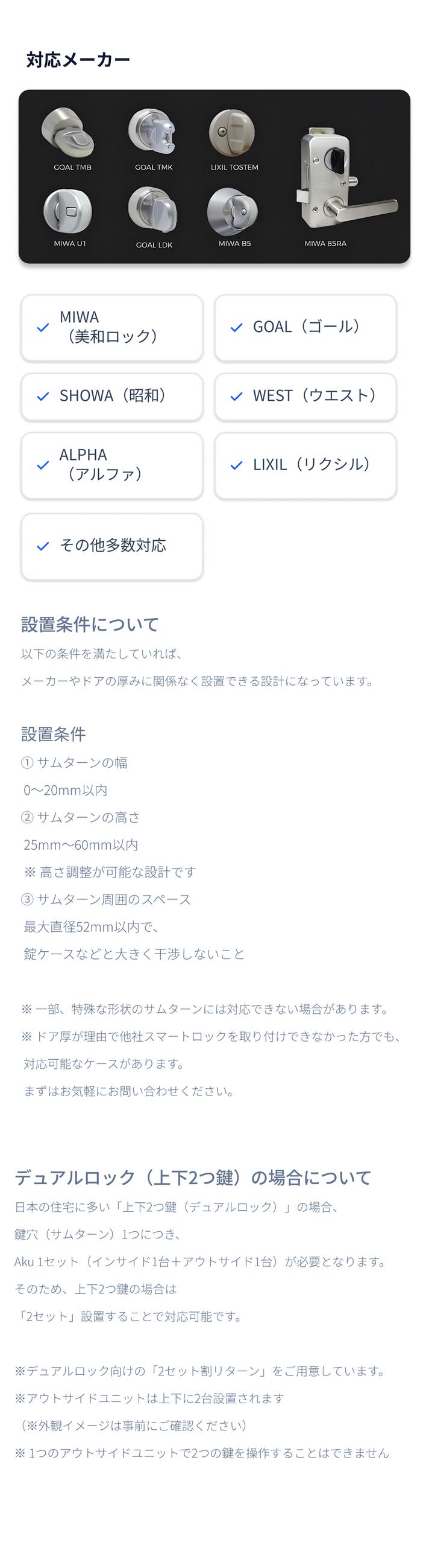 Akuはドアメーカーではなく、室内側のサムターン(つまみ)のサイズを基準に設計されています。