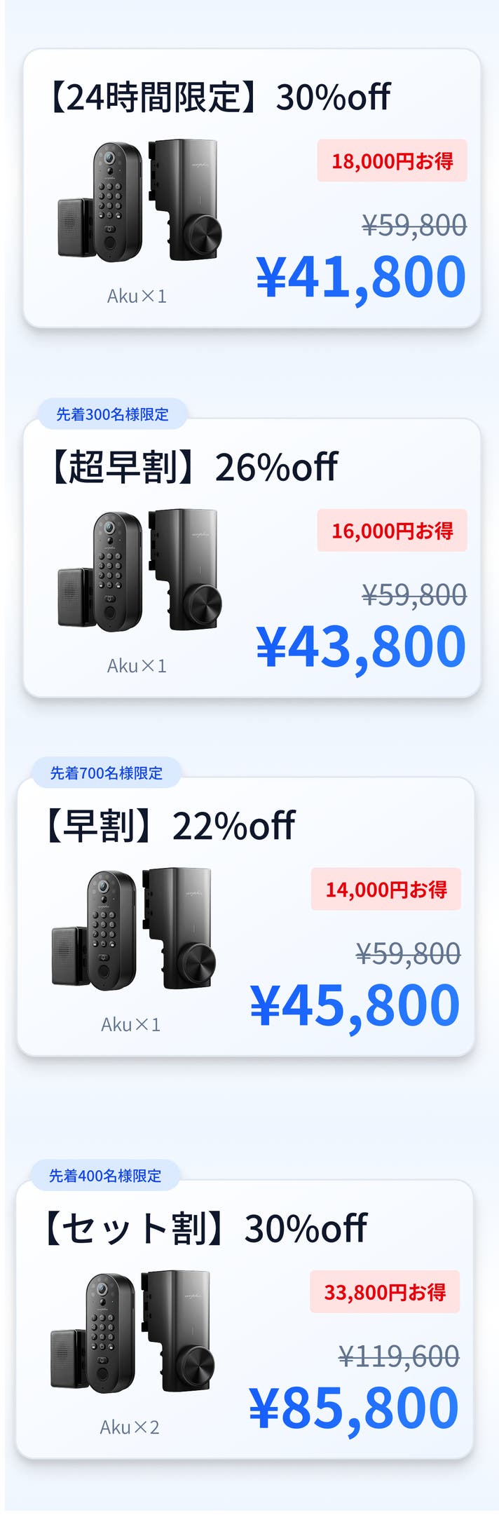 一般販売予定価格:59,800円(税込)の30%OFF(18,000円お得)