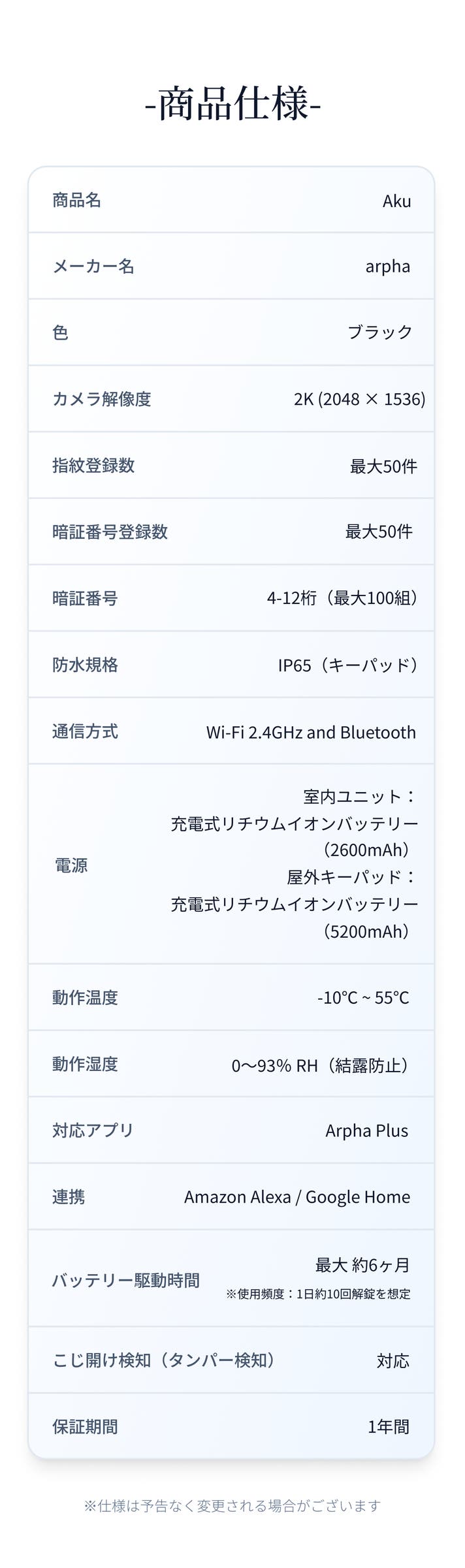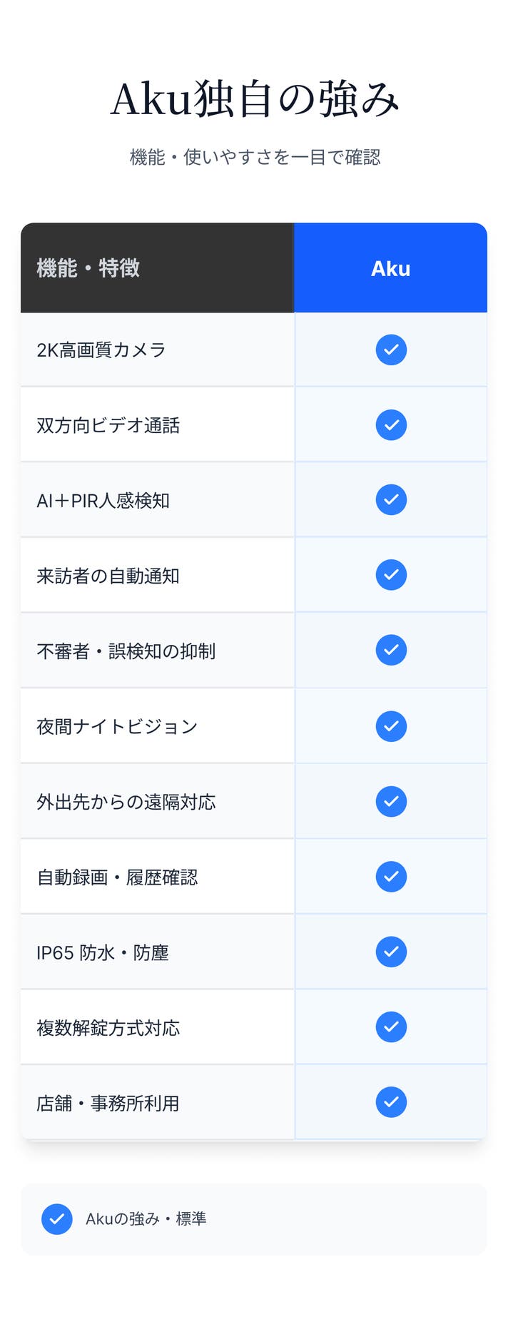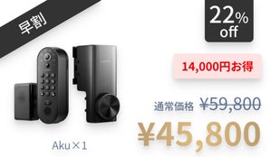 Akuは、スマートロック・防犯カメラ(2K)・インターホン機能を1台に集約した一体型スマートロックです。