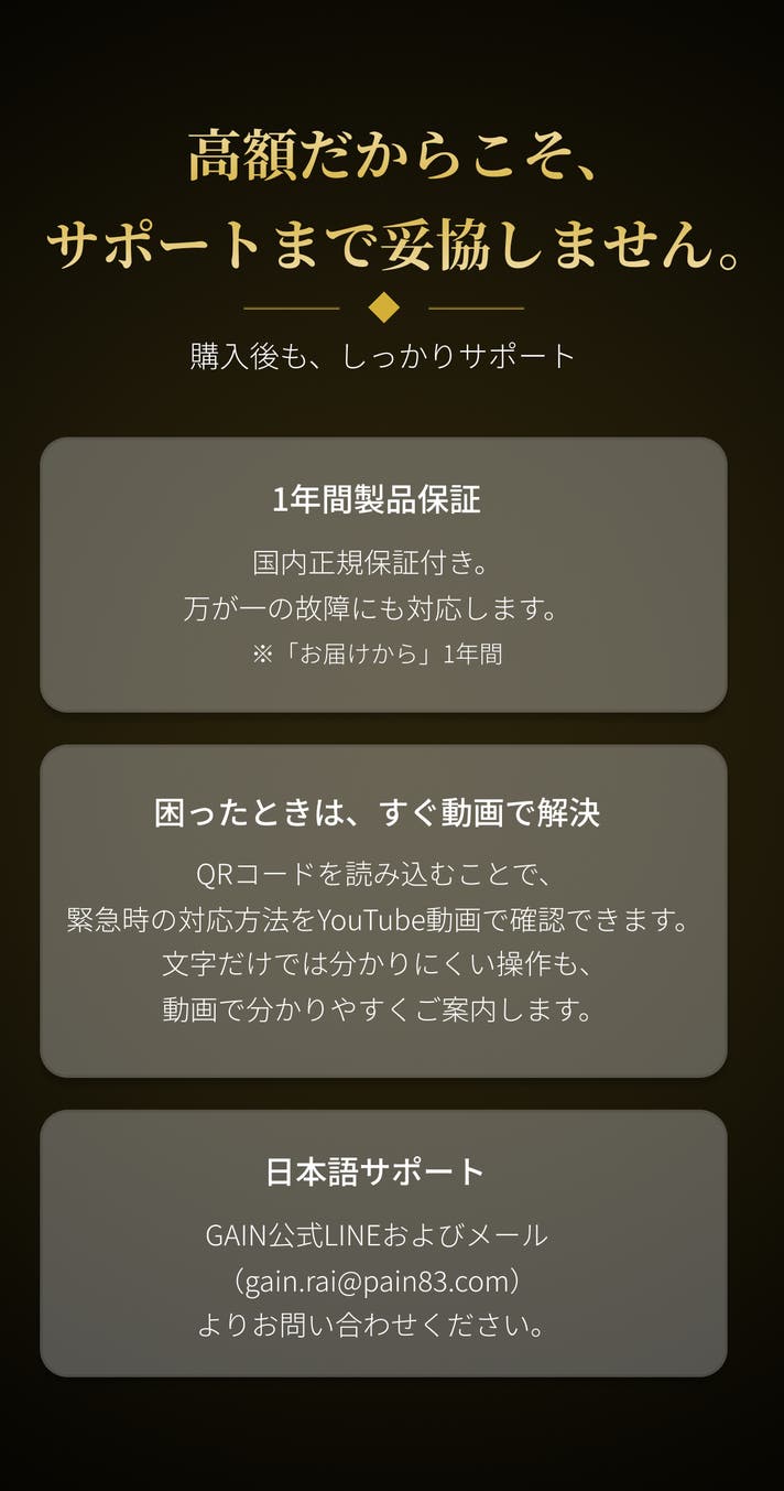 日本国内でのサポートは、正規販売代理店(GAIN)が窓口となり対応いたします。