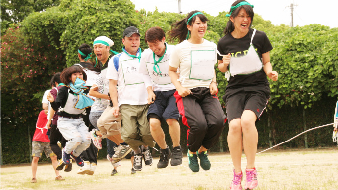競技内容:玉入れ・綱引き・障害物競争・〇☓クイズ・名刺交換大会・企業PR合戦など