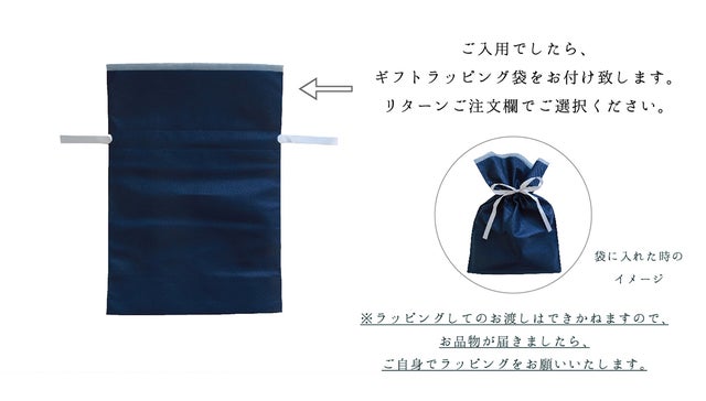 → A.リターンご注文欄に、ラッピング資材の有無を確認する項目がございますので、そちらご選択ください。ラッピング用のギフト袋を同封させていただきますので、お手数ではございますが、商品が届きましたらご自身で簡易ラッピングをお願いいたします。(イメージ掲載済み)