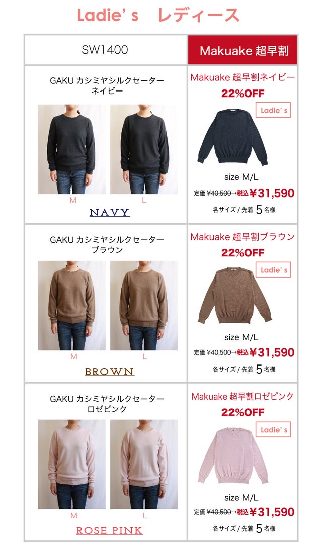 今回のプロジェクトを応援して頂いた皆様が、「カシミヤシルクセーター」でよりおだやかで心地よい日々をお過ごし頂ける様、チーム全員で心を込めて進行して参ります。