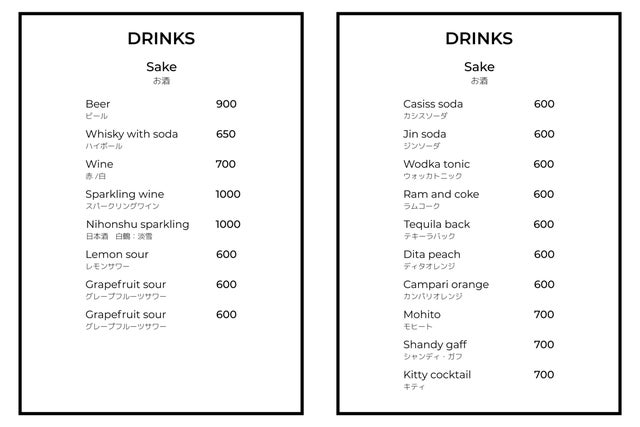 ※コロナウイルスの影響でモーニングとミッドナイトは営業をまだ未定です