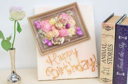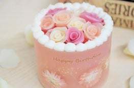 Makuakeのために考案したケーキ型(4号)キャンドルです。お花型キャンドルをあしらった可愛らしいデザインになっており、また、キャンドルにお名前を記載することができるので、特別な日のプレゼントに最適です。