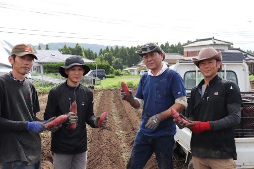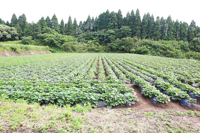 主原料となるサツマイモは、株式会社くしまアオイファーム(宮崎県串間市)から仕入れています。品種はホクホクした食感で、甘みの強い「宮崎紅」、または「紅はるか」を使用しています。くしまアオイファームは近代的な貯蔵施設をもち、1年を通して質のよいサツマイモを提供しています。