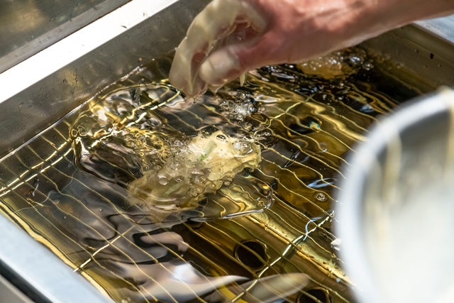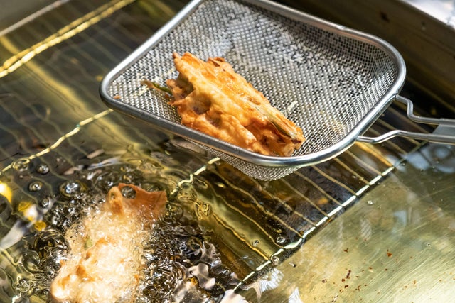 当初はカットした生の野菜と粉をセットにした調理キットを販売しましたが、油で揚げる必要がある、時間が経つと野菜の風味が損なわれるといった欠点がありました。この問題を解消したのが、「ブラストチラー急速冷却機」です。揚げたものをマイナス40℃の庫内で急速に冷まし、凍結させます。これにより、素材の旨みや水分を損なわず、作りたての味を提供することが可能になりました。