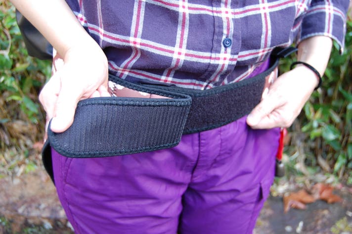 ネオプレーン製で伸縮性のあるので腰に巻いても圧迫感がありません。