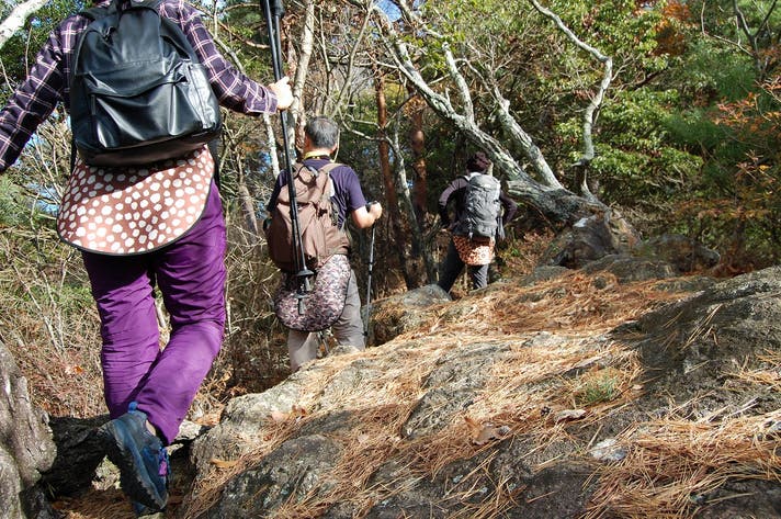 - 登山の登りの辛い時に!ベンチなど無い場所でもすぐに地べたや木や岩に座って休憩が出来ます。
