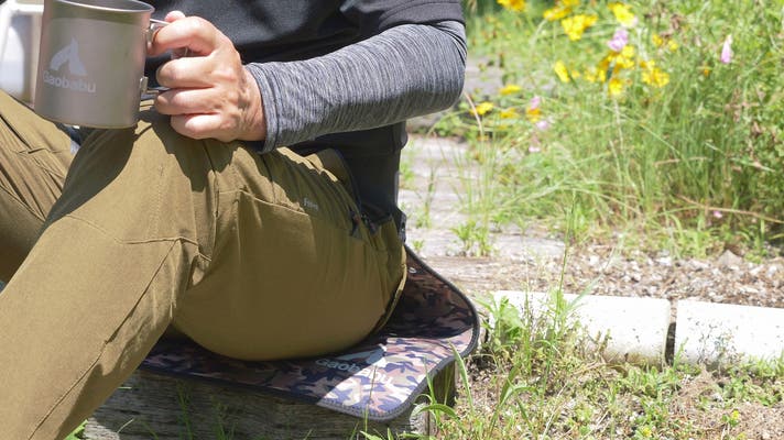 丈夫な防水のネオプレーン製でトレッキングやハイキング、釣り、キャンプ、スノーボードなどで地面が汚れてたり濡れた場所でも気軽に座れます。