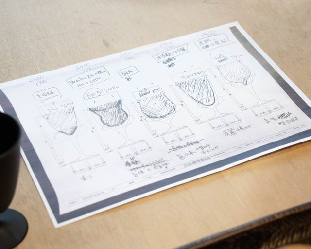 TOHKA 酒杯もまた、デザイナーの浅野雅晴さんとのコラボレーションにより生まれました。デザイナーの皆様とお互いの意見や考えを汲み取りながら一つの形を作っていくことは、大変ではあるものの、おもしろいところでもあると考えています。