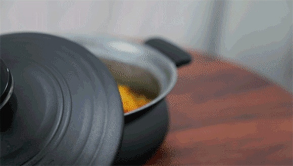 また、私たちは、何軒か一般家庭のキッチンを訪問し、鍋の蓋に耐熱ミトンを使うことが面倒との声を聞いた。その点、この鍋は断熱効果が高い厚めの中空二重設計を採用しており耐熱ミトンは不要。更に火傷防止つまみも備えている。
