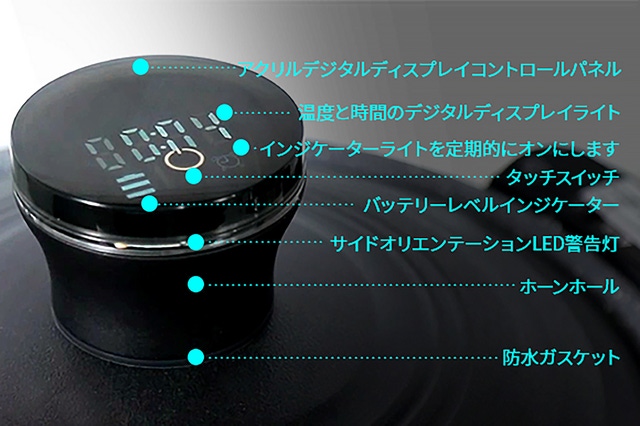 まず、うっかりさんや仕事が忙しい方にとって、高温アラーム(乾式燃焼を防ぐために)やタイムアウトアラーム等、鍋の温度に関わる機能は極めて重要である。これはキッチン防火のための当然の機能であるが、この鍋は大音量のブザーにより、耳の不自由な高齢者が、換気扇の騒音でアラーム音が聞こえない問題にも対応。また、タッチコントロールの超大型LEDディスプレイにより、近視や老眼の方にも見やすく、更にタッチスクリーンにより操作の煩雑さを解決した。