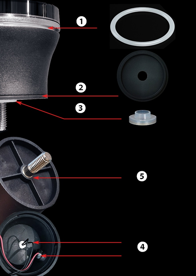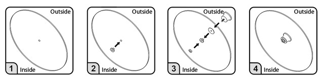 3. ネジが蓋と白いスペーサーを通過するように、黒い防水ガスケットとSmartHandleデジタル鍋つまみを外側から内側に取り付けます。