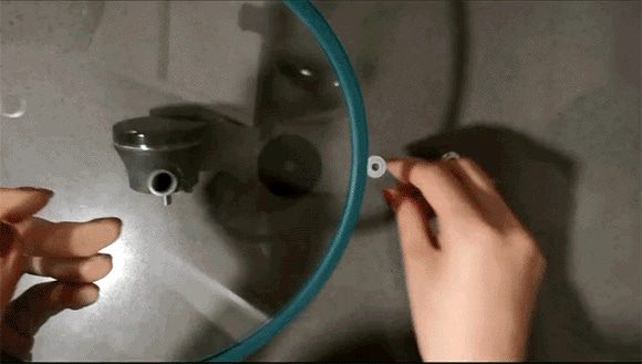 2. SmartHandleデジタル鍋つまみ固定ナットと白い防水固定スペーサーを内側から取り外し、白い防水固定スペーサーを蓋に挿入して蓋に取り付けます。