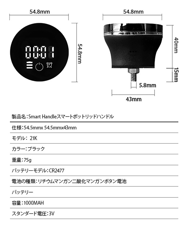 ある程度の防水性能を確保するために、SMART HANDLEデジタル鍋つまみはボタン電池を使用します。電量が足りない場合は、自分で電池を交換する必要があります。