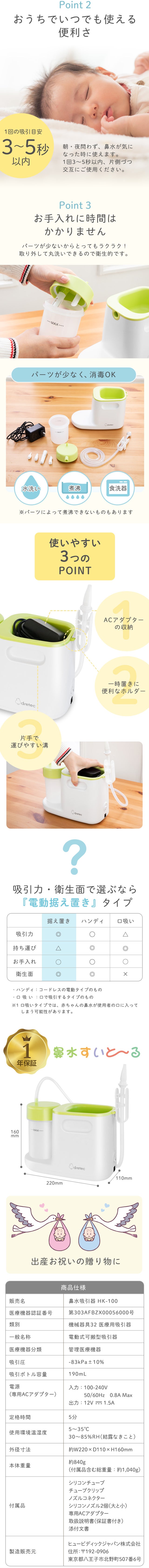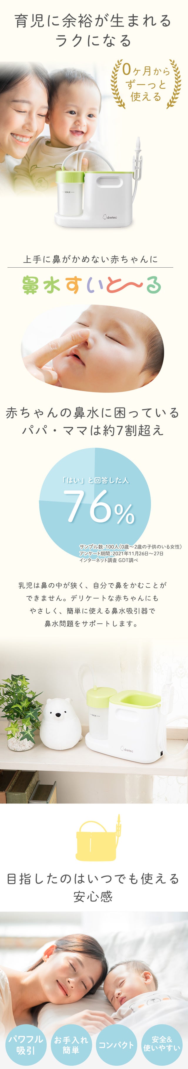 - ズルズル鼻水を楽に吸い取るパワー&吸引力を調節可能!痛くないやわらかノズルでお子様にやさしい