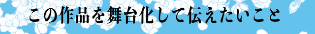 この作品を舞台化することにより、演劇を普段観ないような方達にも興味を持ってもらえ、お芝居って楽しいな。また観てみようかな。