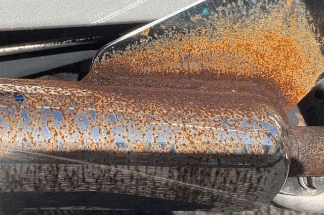 本プロジェクト担当者である私が旧車バイクオーナーということもあり、自身で色々なサビ取り剤を試してみましたが、垂直面や曲面に発生したサビは液体サビ取り剤ではなかなか落ちず、『一体何本使ったら落ちるんだろう?』というほどサビ取り剤を大量に使用しなければ落ちません。
