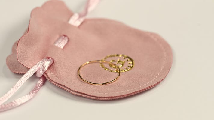 本プロジェクトのK18リングは、当社オリジナルのブランドロゴ入り巾着にお入れし、丁寧に梱包いたします。
