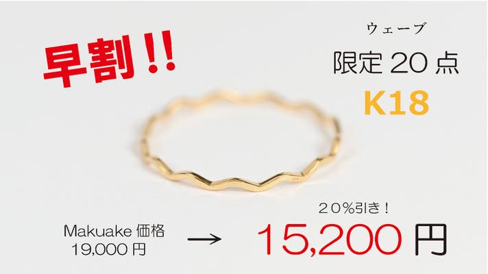 【早割】K18リング(ウェーブ)Makuake価格から20%OFF