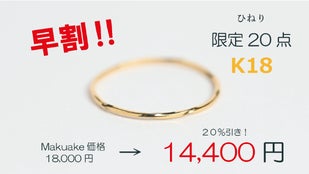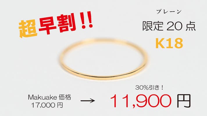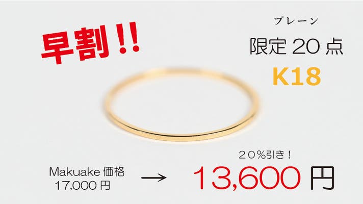 【早割】K18リング(プレーン)Makuake価格から20%OFF