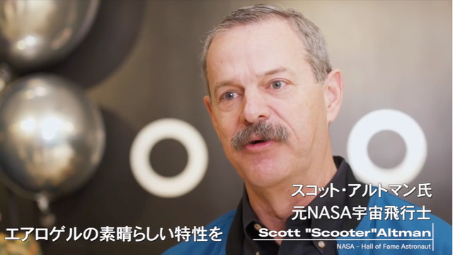 上の映像はエアロゲルに下から火を当てても、エアロゲルがしっかり断熱しているため、上に置いてあるチョコレートが溶けないというシーンです。いかにエアロゲルの断熱性が優れているかがよくわかるかと思います。