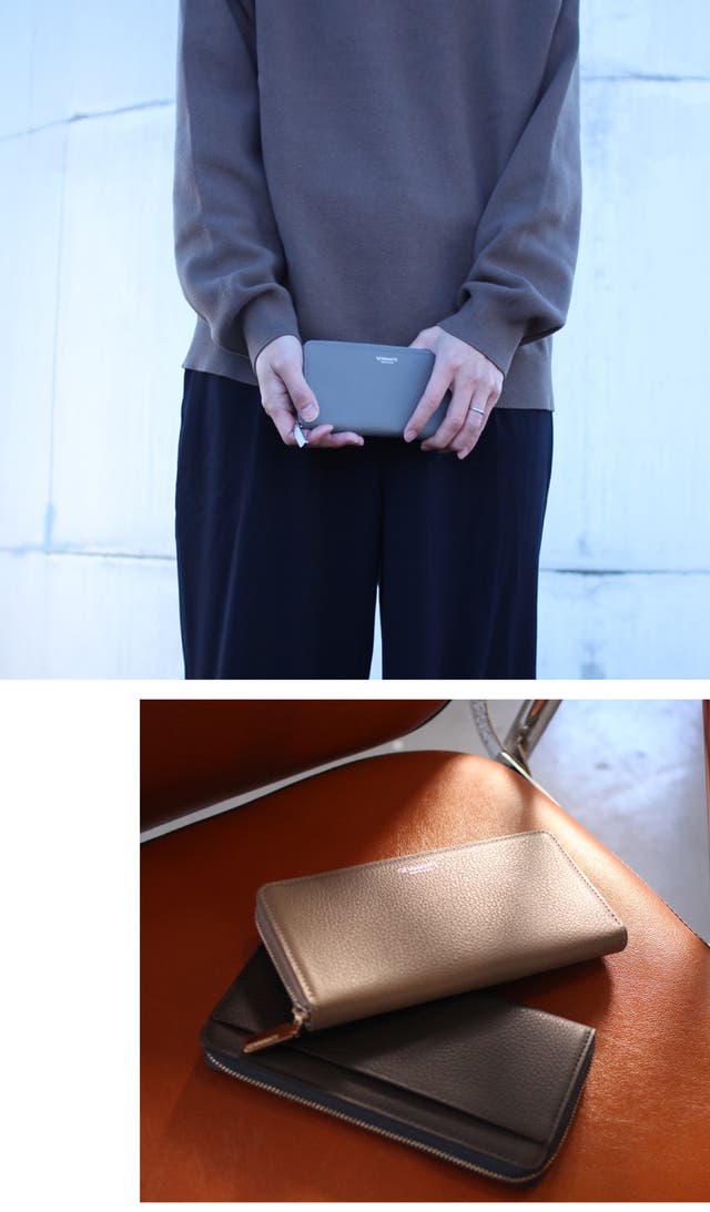 - 職人の熟練技が光る!ラウンドファスナー型はスリム化最難関。ミリ単位でこだわったコンパクト長財布