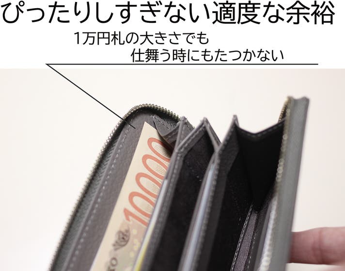 コンパクトでも、お札がジッパーに噛みづらい大きさにこだわりました。