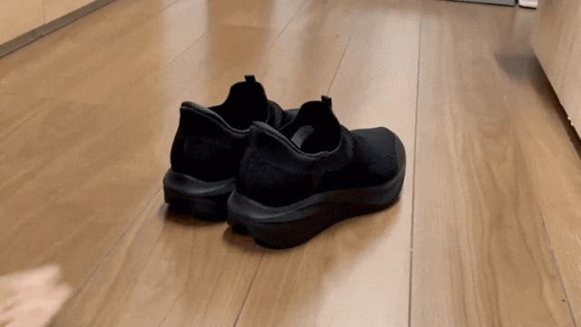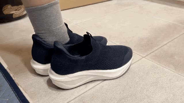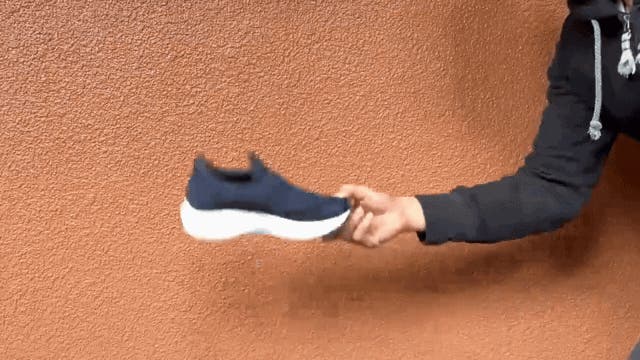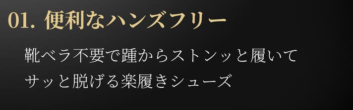 履く時は踵を押し込むだけ!、脱ぐ時は踵を少し上げてつま先を踏み込むだけ!動物が前足をかくようにすると簡単スリップアウトできます。