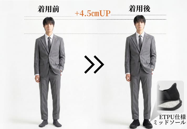 - 機能満載!高弾力インソール、通気性、つま先防汚、身長UP、ゆったり設計