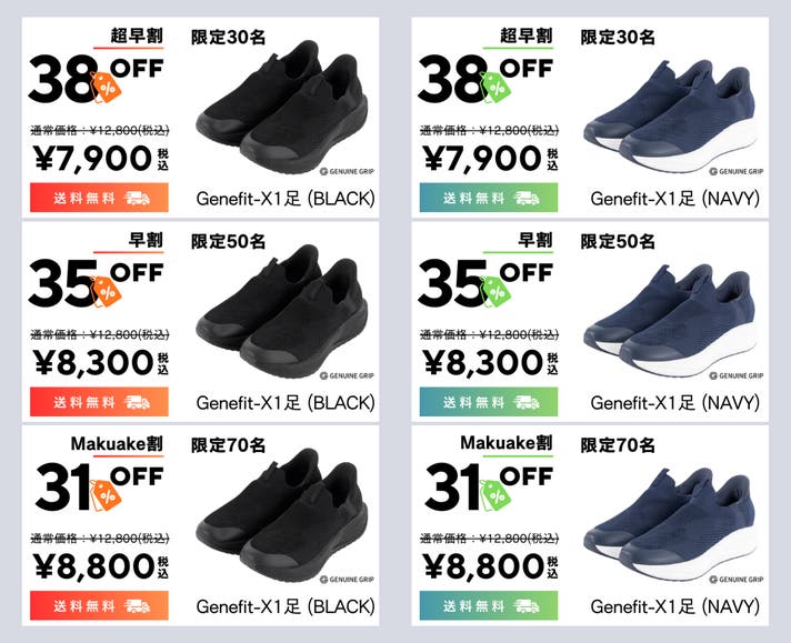 Makuake割 限定70名 Genefit X ネイビー 1足